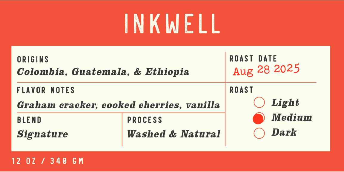 Inkwell has quickly become a favorite for many of our customers. This house blend has something for everyone, but it’s not just a simple crowd-pleaser. This blend represents everything we are proud to showcase in our coffees: care in production, intentional sourcing, and a roaster’s unique touch, all balanced in a complex, delicate dance. It’s proof that blending doesn’t mean watering down quality.