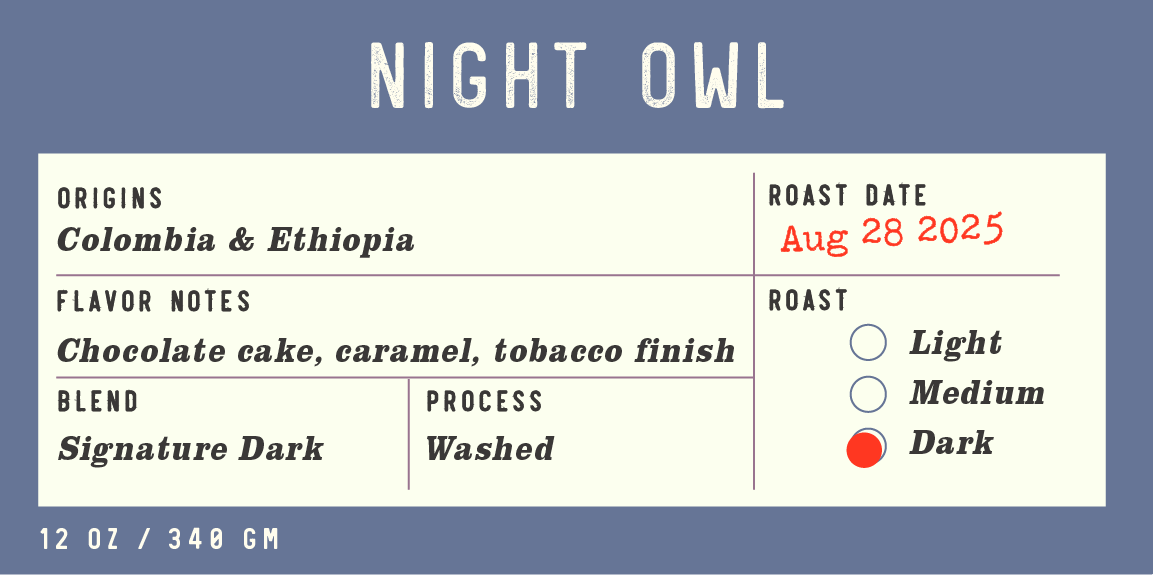 A dark roast you say?! What in tarnation!? Well at Quills a common saying is “Quality for All” and we can’t say that if we aren’t constantly looking at our coffee offerings and pushing the boundaries. A blend of Honduras and Colombia, this blend is the darkest roast we’ve done to date, but also something we’re proud to put alongside our other coffees.